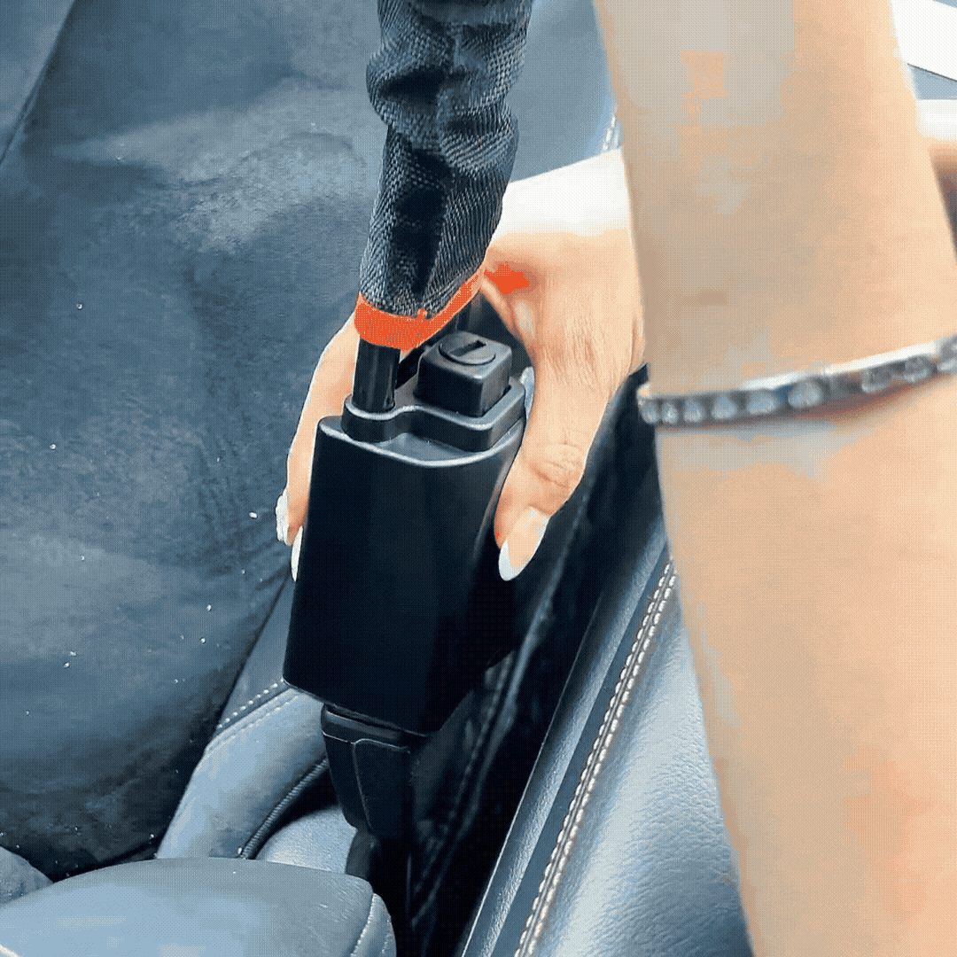 Insert into seatbelt buckle—it locks automatically.